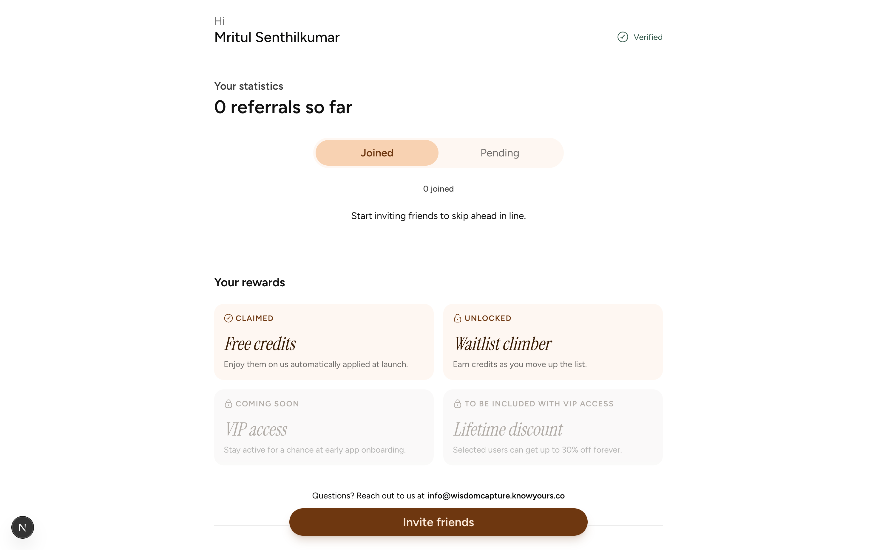 Waitlist landing page with complete referral engine and dashboard built for consumer conference note taking app.